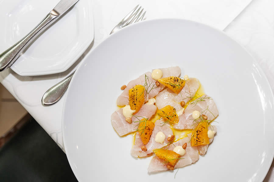 Crudo de pescada, laranja tostada e molho cítrico - 63,