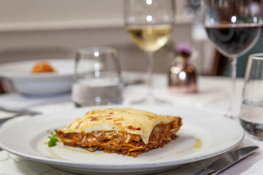 (Massa fresca feita na casa intercalada com ragú de carne e cogumelos, gratinada com parmesão)